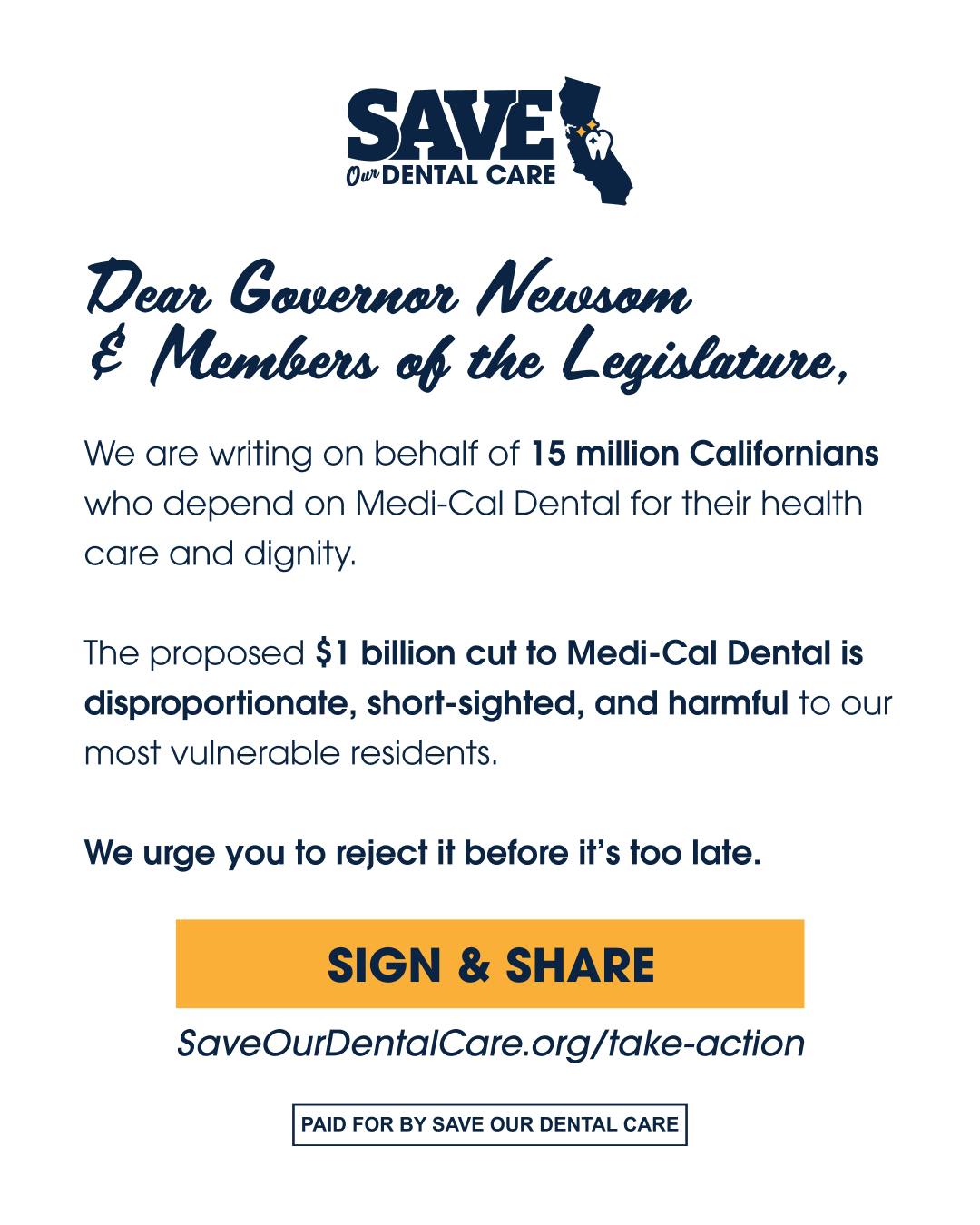 Make your voice heard in Sacramento. Decisions are being made right now that will impact dental care access for millions of Californians. It only takes a minute to tell your representative why protecting our oral health matters.